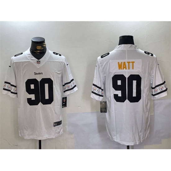 Men's Pittsburgh Steelers #90 T.J. Watt White 2019 Team Logo Cool Edition Stitched Jersey