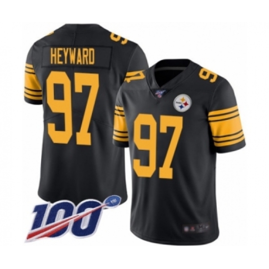 Men's Pittsburgh Steelers #97 Cameron Heyward Limited Black Rush Vapor Untouchable 100th Season Football Jersey