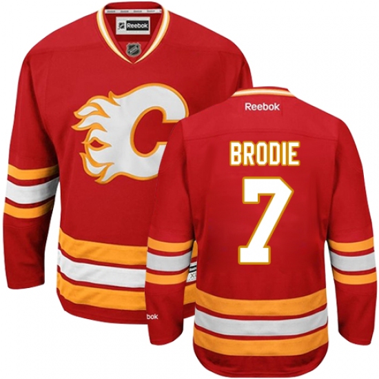 Home>NHL>Calgary Flames>TJ Brodie>Men's Reebok Calgary Flames #7 TJ Brodie Authentic Red Third NHL Jersey