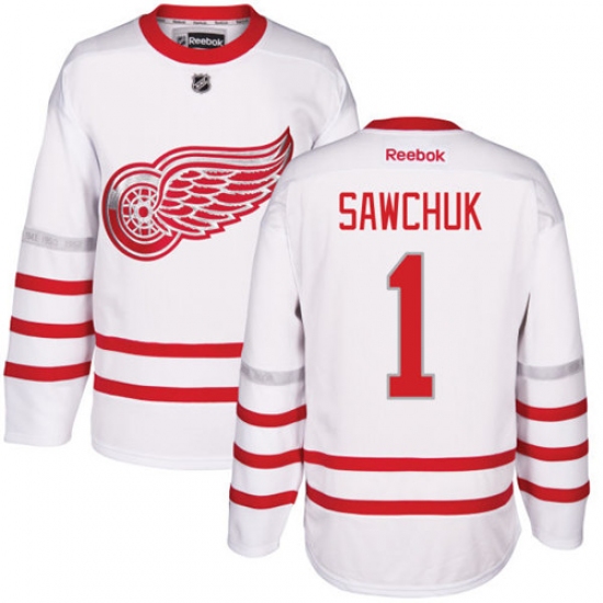 Home>NHL>Detroit Red Wings>Terry Sawchuk>Men's Reebok Detroit Red Wings #1 Terry Sawchuk Authentic White 2017 Centennial Classic NHL Jersey
