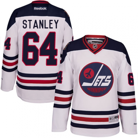 Men's Reebok Winnipeg Jets #64 Logan Stanley Premier White 2016 Heritage Classic NHL Jersey