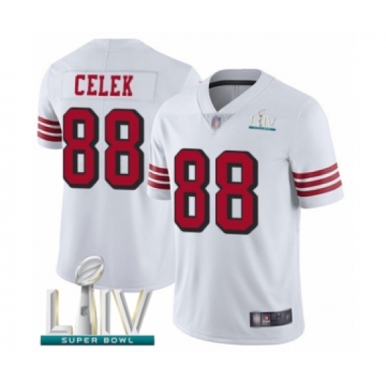 >Men's San Francisco 49ers #88 Garrett Celek Limited White Rush Vapor Untouchable Super Bowl LIV Bound Football Jersey