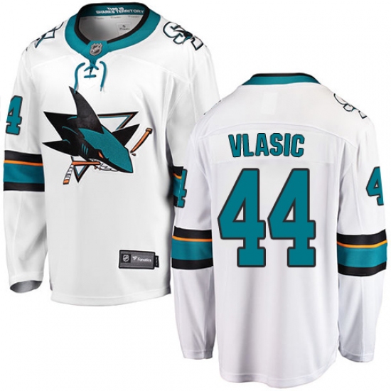 Home>NHL>San Jose Sharks>Marc-Edouard Vlasic>Men's San Jose Sharks #44 Marc-Edouard Vlasic Fanatics Branded White Away Breakaway NHL Jersey