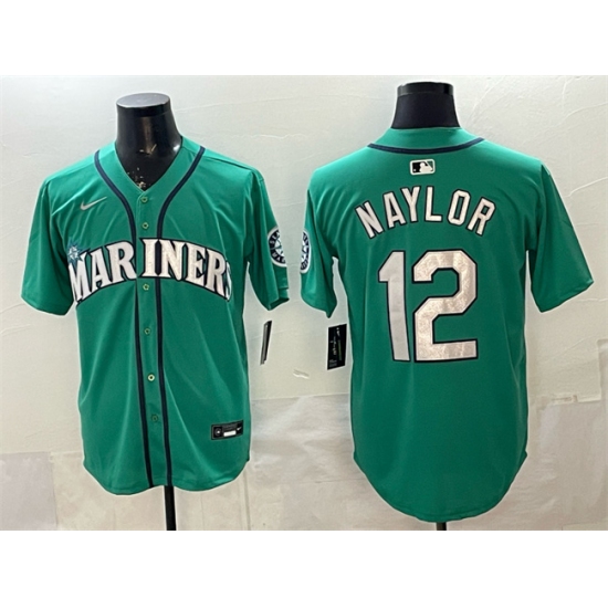 >Men's Seattle Mariners #12 Josh Naylor Aqua Limited Stitched jersey