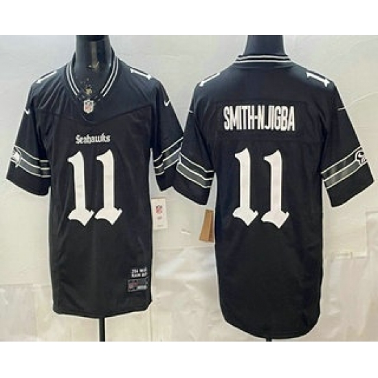 Men's Seattle Seahawks #11 Jaxon Smith Njigba Black 2025 FUSE Gothic Rain City Shadows Edition Vapor Limited Jersey