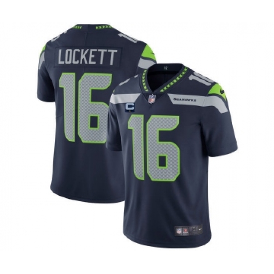 >Men's Seattle Seahawks 2022 #16 Tyler Lockett Navy With 1-star C Patch Vapor Untouchable Limited Stitched NFL Jersey