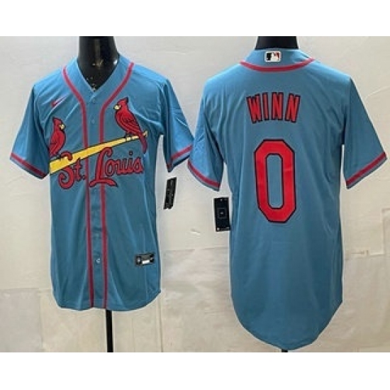 >Men's St Louis Cardinals #0 Masyn Winn Blue Cool Base Jersey