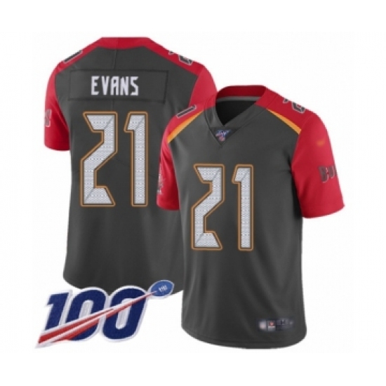 >Men's Tampa Bay Buccaneers #21 Justin Evans Limited Gray Inverted Legend 100th Season Football Jersey