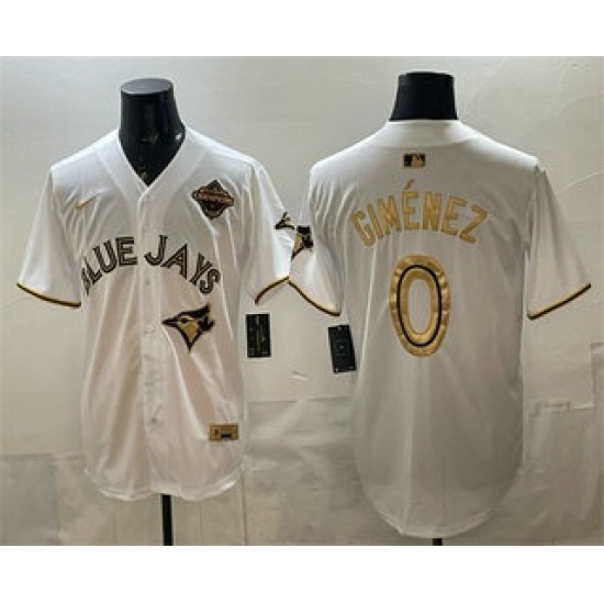 Men's Toronto Blue Jays #0 Andres Gimenez White Gold 2025 American League Champions Limited Jersey