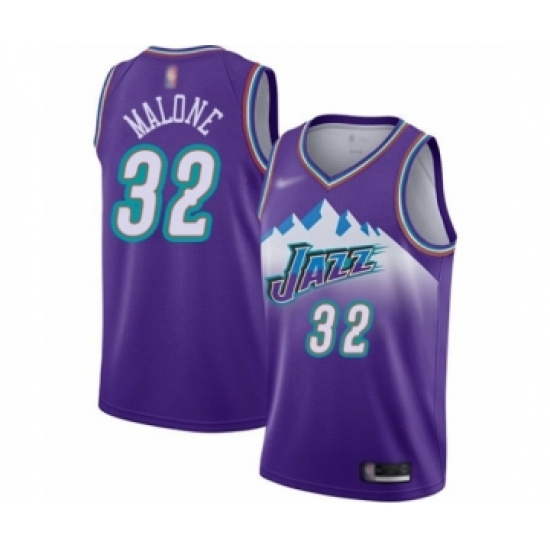 Men's Utah Jazz #32 Karl Malone Authentic Purple Hardwood Classics Basketball Jersey