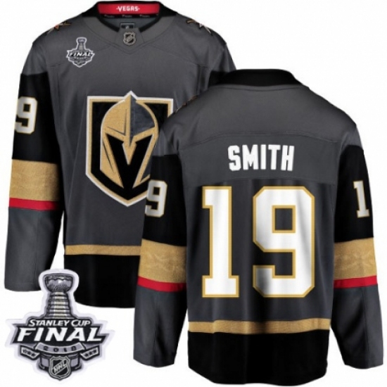 >Men's Vegas Golden Knights #19 Reilly Smith Authentic Black Home Fanatics Branded Breakaway 2018 Stanley Cup Final NHL Jersey