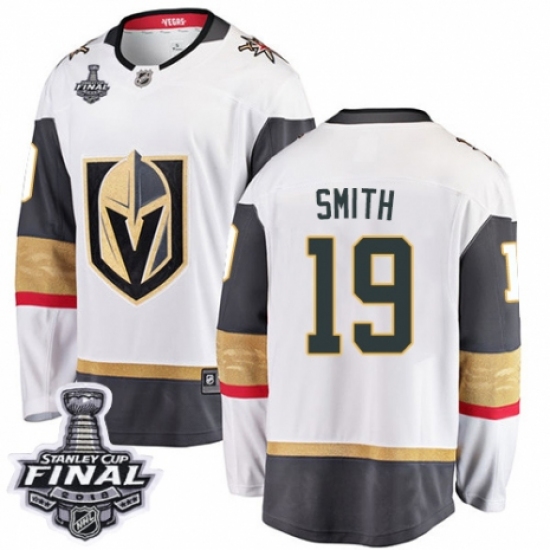 >Men's Vegas Golden Knights #19 Reilly Smith Authentic White Away Fanatics Branded Breakaway 2018 Stanley Cup Final NHL Jersey