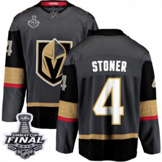 Men's Vegas Golden Knights #4 Clayton Stoner Authentic Black Home Fanatics Branded Breakaway 2018 Stanley Cup Final NHL Jersey