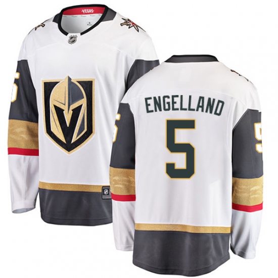 Home>NHL>Vegas Golden Knights>Deryk Engelland>Men's Vegas Golden Knights #5 Deryk Engelland Authentic White Away Fanatics Branded Breakaway NHL Jersey