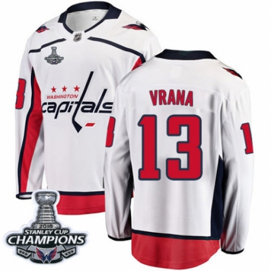 Men's Washington Capitals #13 Jakub Vrana Fanatics Branded White Away Breakaway 2018 Stanley Cup Final Champions NHL Jersey