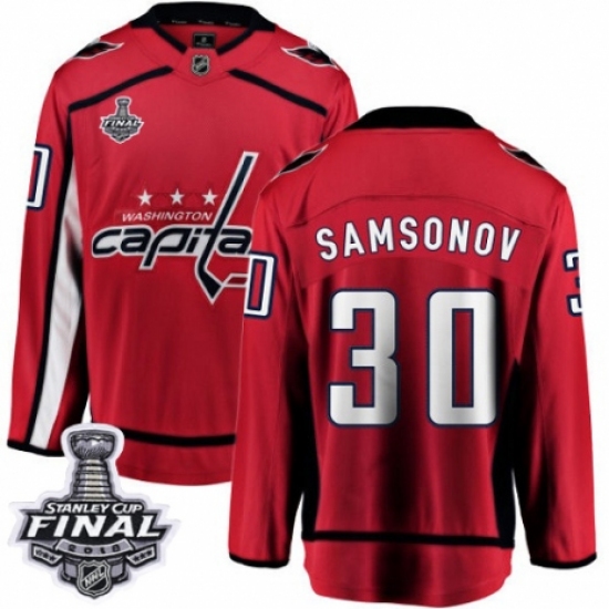 Men's Washington Capitals #30 Ilya Samsonov Fanatics Branded Red Home Breakaway 2018 Stanley Cup Final NHL Jersey