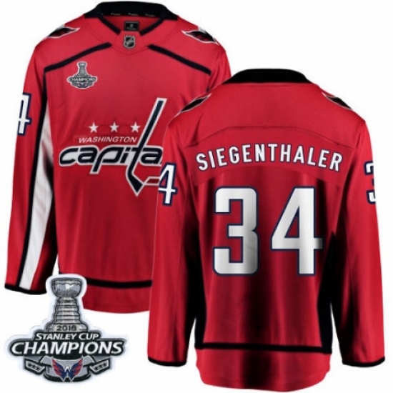 Men's Washington Capitals #34 Jonas Siegenthaler Fanatics Branded Red Home Breakaway 2018 Stanley Cup Final Champions NHL Jersey