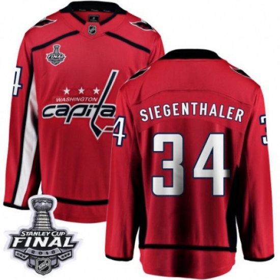>Men's Washington Capitals #34 Jonas Siegenthaler Fanatics Branded Red Home Breakaway 2018 Stanley Cup Final NHL Jersey