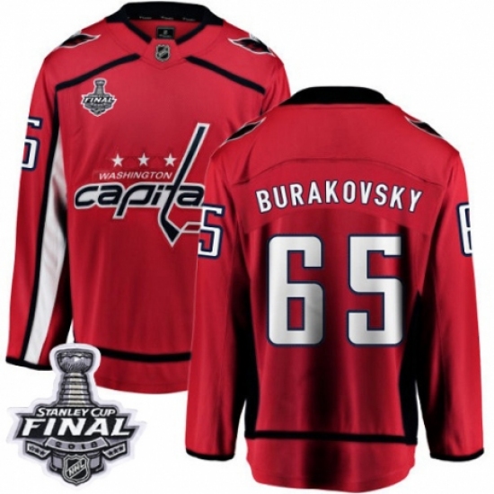 Men's Washington Capitals #65 Andre Burakovsky Fanatics Branded Red Home Breakaway 2018 Stanley Cup Final NHL Jersey