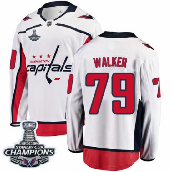 >Men's Washington Capitals #79 Nathan Walker Fanatics Branded White Away Breakaway 2018 Stanley Cup Final Champions NHL Jersey