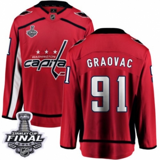 Men's Washington Capitals #91 Tyler Graovac Fanatics Branded Red Home Breakaway 2018 Stanley Cup Final NHL Jersey