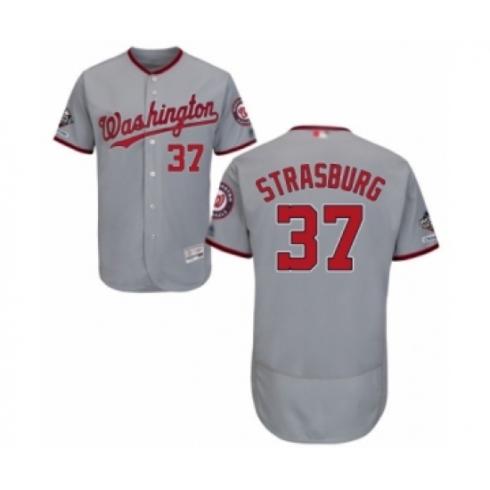 >Men's Washington Nationals #37 Stephen Strasburg Grey Road Flex Base Authentic Collection 2019 World Series Champions Baseball Jersey