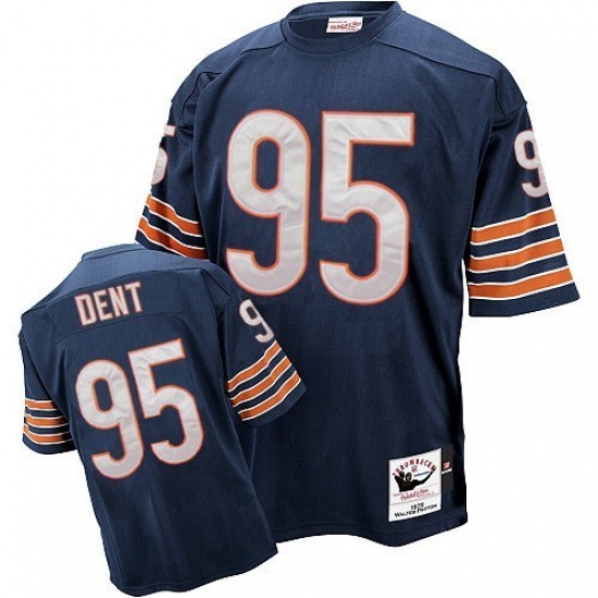 Feel like part of your favorite team by wearing this NFL® Mitchell And Ness Chicago Bears #95 Richard Dent Authentic Jersey Blue Team Color Authentic Throwback NFL Jersey, made of thick, high-quality Pro-Brite fabric for a genuine gridiron look. The players number which 100% stitched is displayed in tackle twill on the chest, back and sleeves, along with the team name on the front. The players name which 100% stitched is displayed on a sewn-down nameplate at the back. 100% Pro-Brite nylon and 100% Pro-Brite polyester for body, 100% lycratalic spandex dazzle for Side Panels/Collar/Cuffs, NFL® Equipment patch sewn on the bottom of the front collar or fabric insert, NFL® Equipment jock tag with numeric sizing is applied to the lower left bottom of the jersey, Officially licensed