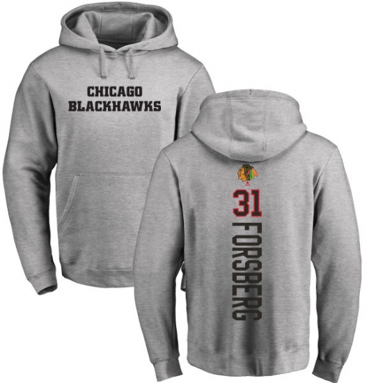 NHL Adidas Chicago Blackhawks #31 Anton Forsberg Ash Backer Pullover Hoodie