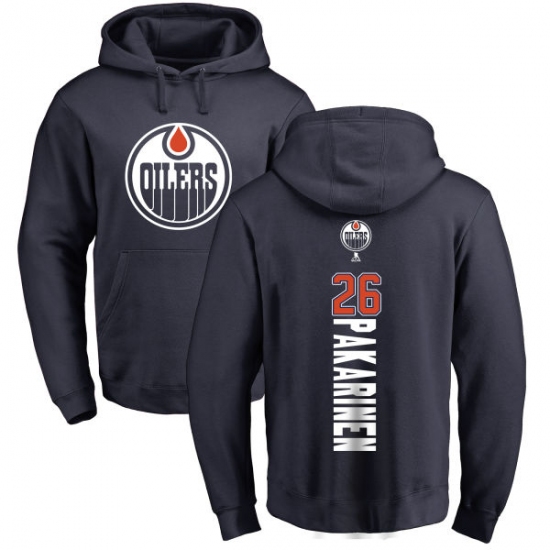 NHL Adidas Edmonton Oilers #26 Iiro Pakarinen Navy Blue Backer Pullover Hoodie