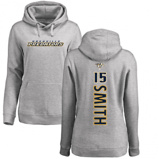 Home>NHL>Nashville Predators>Craig Smith>NHL Women's Adidas Nashville Predators #15 Craig Smith Ash Backer Pullover Hoodie