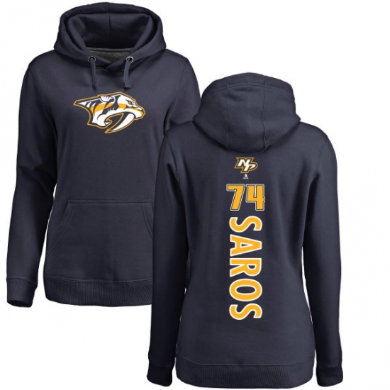 Home>NHL>Nashville Predators>Juuse Saros>NHL Women's Adidas Nashville Predators #74 Juuse Saros Navy Blue Backer Pullover Hoodie