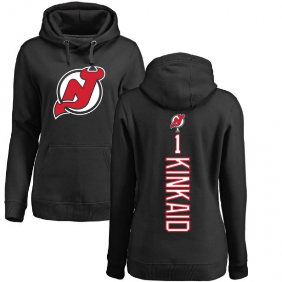 NHL Women's Adidas New Jersey Devils #1 Keith Kinkaid Black Backer Pullover Hoodie