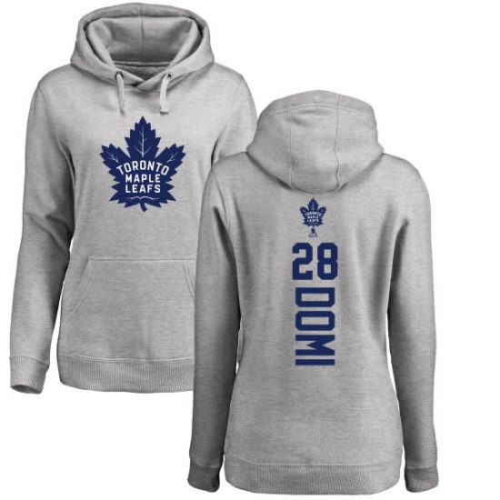 NHL Women's Adidas Toronto Maple Leafs #28 Tie Domi Ash Backer Pullover Hoodie