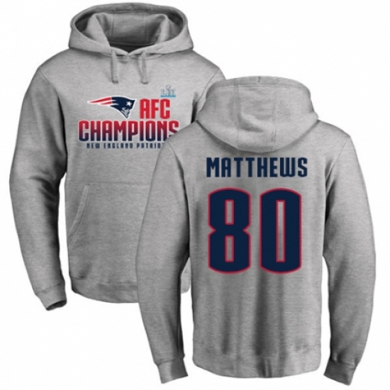 Nike New England Patriots #80 Jordan Matthews Heather Gray 2017 AFC Champions Pullover Hoodie