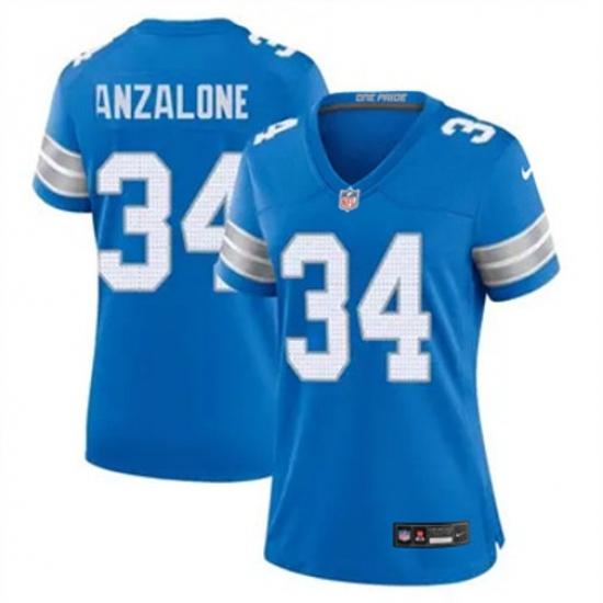 >Women Detroit Lions #34 Alex Anzalone Blue Vapor Stitched Nike NFL Jersey