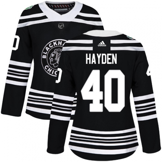 Women's Adidas Chicago Blackhawks #40 John Hayden Authentic Black 2019 Winter Classic NHL Jersey