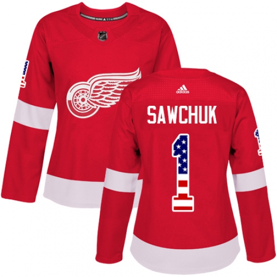 Home>NHL>Detroit Red Wings>Terry Sawchuk>Women's Adidas Detroit Red Wings #1 Terry Sawchuk Authentic Red USA Flag Fashion NHL Jersey