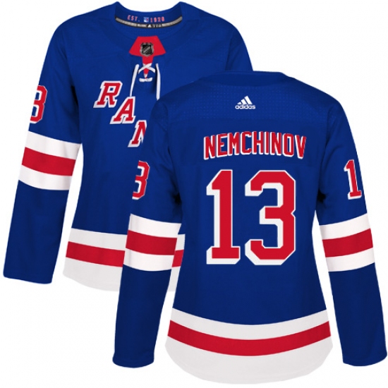 Home>NHL>New York Rangers>Sergei Nemchinov>Women's Adidas New York Rangers #13 Sergei Nemchinov Premier Royal Blue Home NHL Jersey