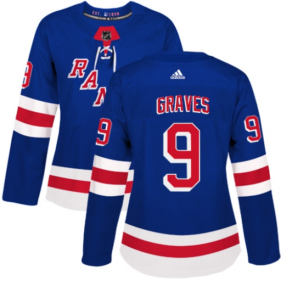 Home>NHL>New York Rangers>Adam Graves>Women's Adidas New York Rangers #9 Adam Graves Authentic Royal Blue Home NHL Jersey