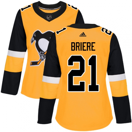 Women's Adidas Pittsburgh Penguins #21 Michel Briere Authentic Gold Alternate NHL Jersey