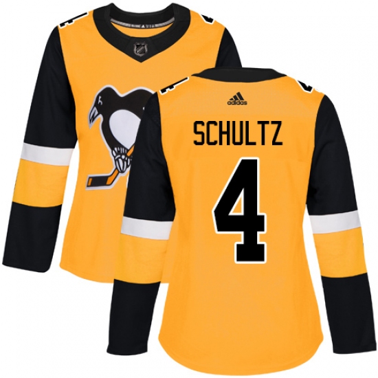 >Women's Adidas Pittsburgh Penguins #4 Justin Schultz Authentic Gold Alternate NHL Jersey