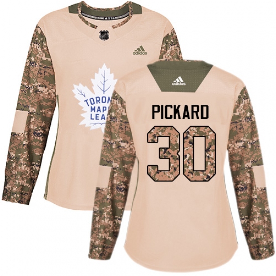 >Women's Adidas Toronto Maple Leafs #30 Calvin Pickard Authentic Camo Veterans Day Practice NHL Jersey