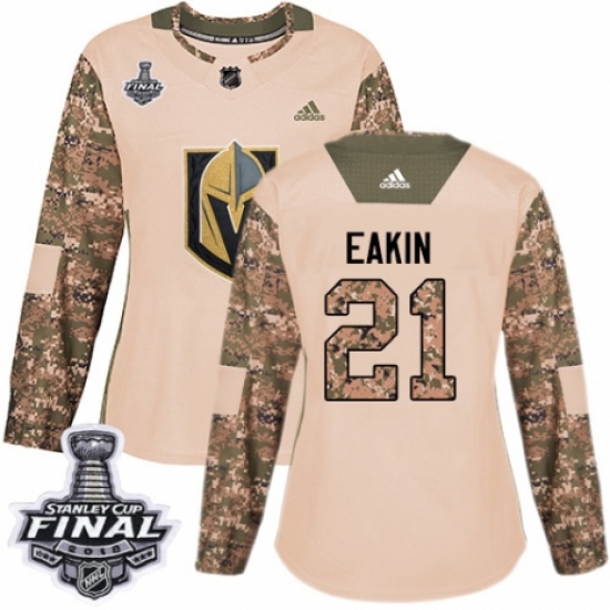 Women's Adidas Vegas Golden Knights #21 Cody Eakin Authentic Camo Veterans Day Practice 2018 Stanley Cup Final NHL Jersey