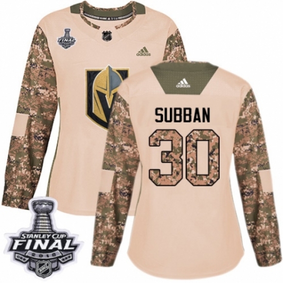 >Women's Adidas Vegas Golden Knights #30 Malcolm Subban Authentic Camo Veterans Day Practice 2018 Stanley Cup Final NHL Jersey