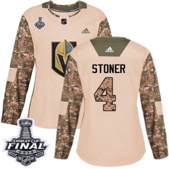 Women's Adidas Vegas Golden Knights #4 Clayton Stoner Authentic Camo Veterans Day Practice 2018 Stanley Cup Final NHL Jersey