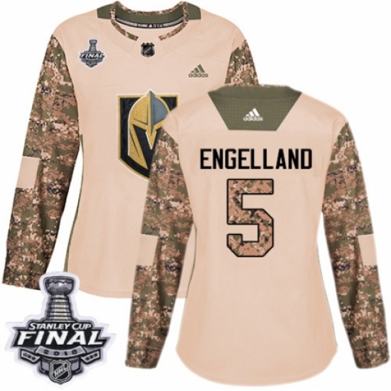 Women's Adidas Vegas Golden Knights #5 Deryk Engelland Authentic Camo Veterans Day Practice 2018 Stanley Cup Final NHL Jersey