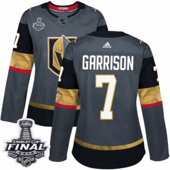 Women's Adidas Vegas Golden Knights #7 Jason Garrison Authentic Gray Home 2018 Stanley Cup Final NHL Jersey
