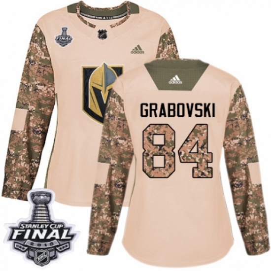 >Women's Adidas Vegas Golden Knights #84 Mikhail Grabovski Authentic Camo Veterans Day Practice 2018 Stanley Cup Final NHL Jersey