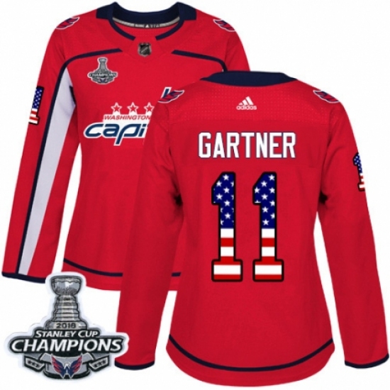 Women's Adidas Washington Capitals #11 Mike Gartner Authentic Red USA Flag Fashion 2018 Stanley Cup Final Champions NHL Jersey