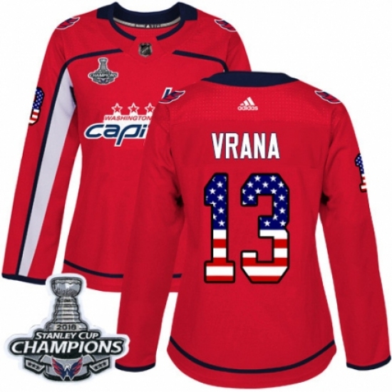 Women's Adidas Washington Capitals #13 Jakub Vrana Authentic Red USA Flag Fashion 2018 Stanley Cup Final Champions NHL Jersey